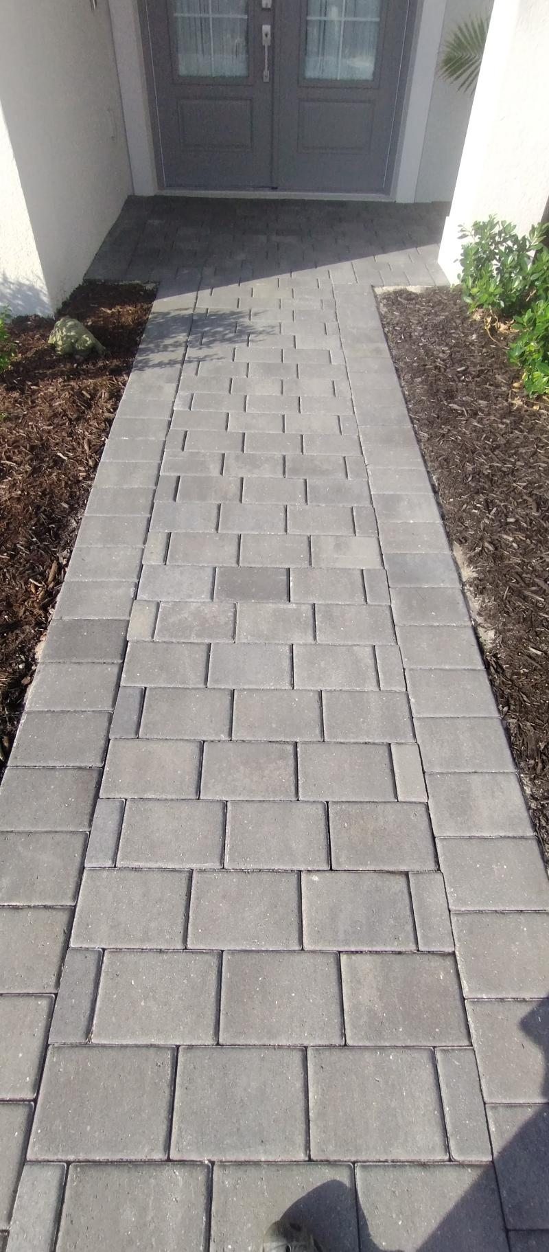 Pavers are washed with a proprietary detergent to remove any and all organic matter. Paver joints sanded for stabilization.